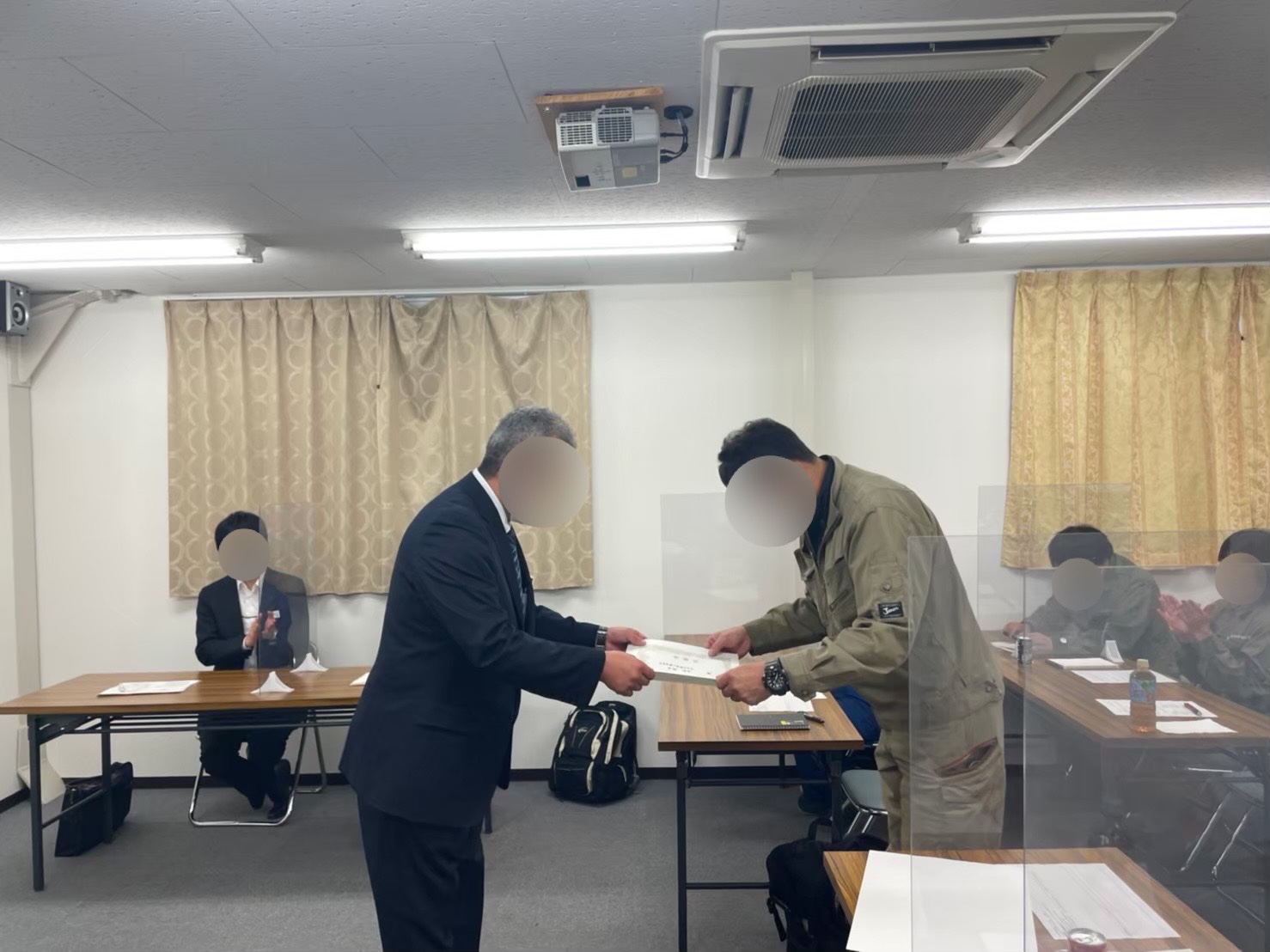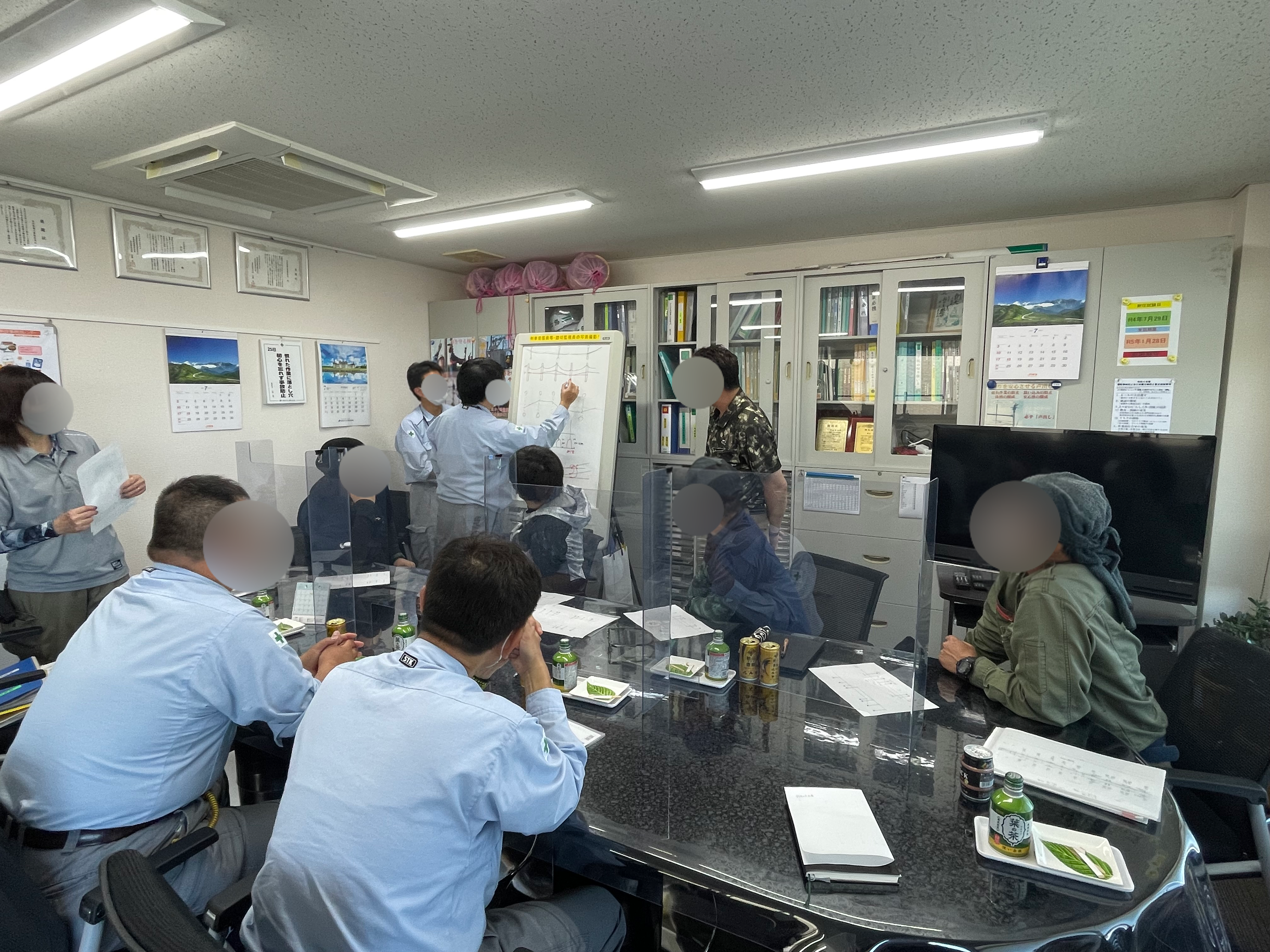 ヘルメットや安全帯といった安全器具の着用や使用する道具類の点検を徹底しているほか、月に一度の安全会議・年に二度の基本動作訓練も実施しています。