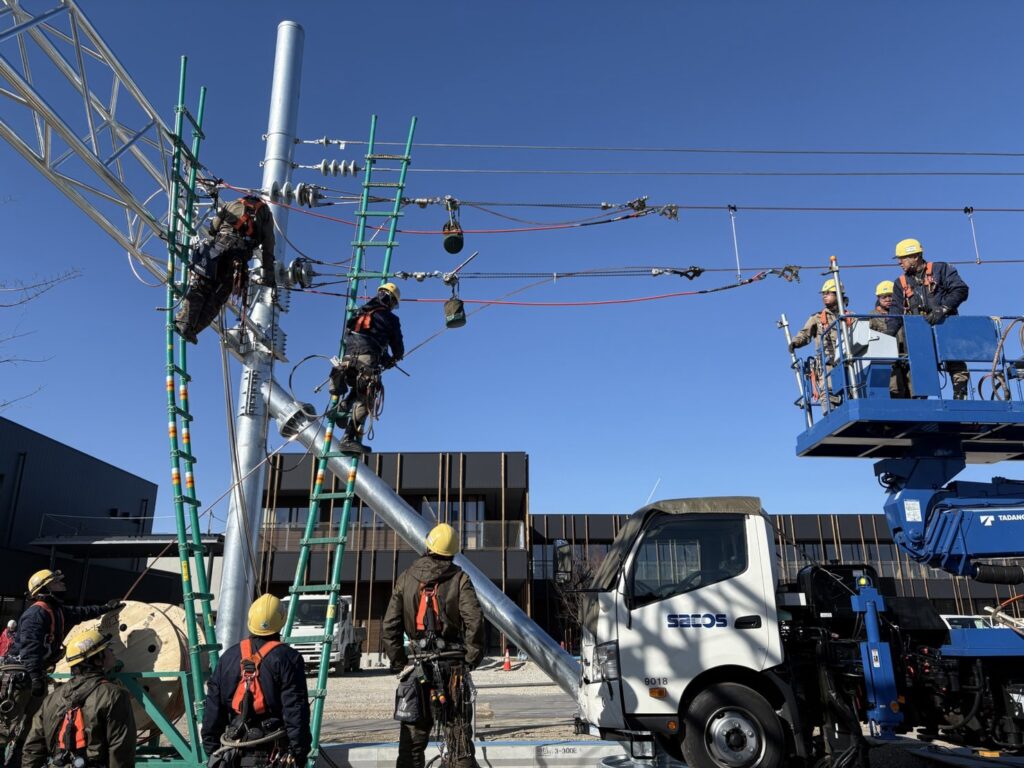 本工事では、安全性および施工精度に十分配慮しながら、計画通りに作業を完了することができました。模擬架線は、作業訓練や技術向上を目的とした重要な設備であり、今後の人材育成にも大きく寄与するものと考えております。